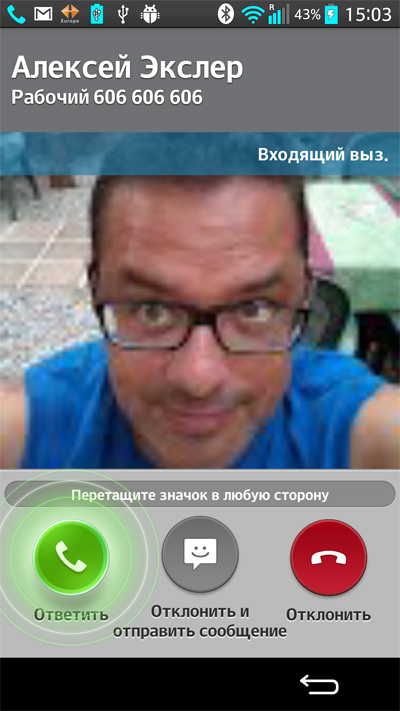 Входящий звонок - три опции, включая отклонить со стандартным SMS.