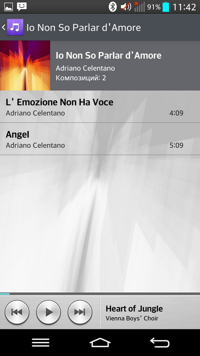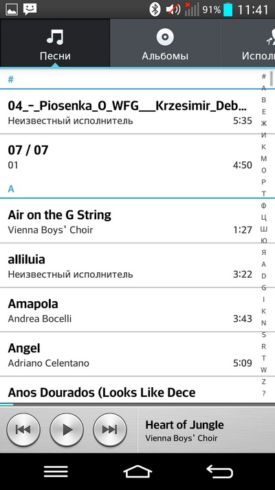Аудиоприложение вроде выглядит как стандартное андроидное, однако там есть немало возможностей: отбор по композициям, альбомам, исполнителям, жанрам, плей-листам, папкам, с других устройств, в облаке (Dropbox или Box).