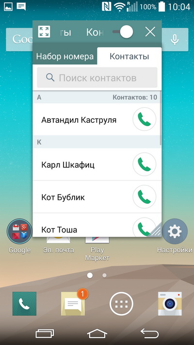 Контакты, как и некоторые другие системные приложения, с помощью специальной пиктограммы можно превращать в мини-приложение - так называемый QSlide. Это оконные приложения, которые можно перемещать по экрану, менять их размер и так далее.