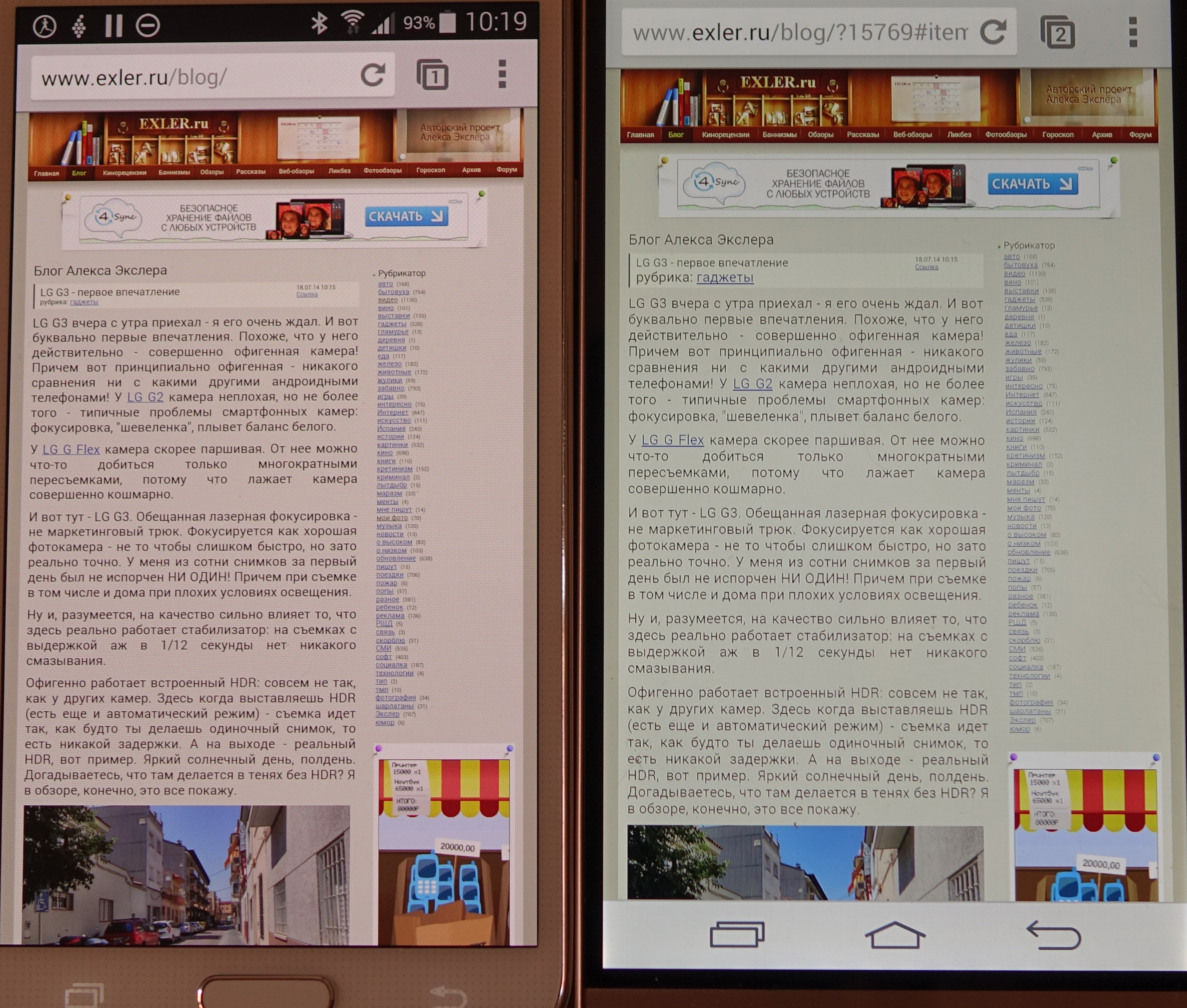 Не знаю, насколько это передается на фото, - попробуйте сравнить (кликабельно). Слева - Galaxy S5, справа - LG G3.