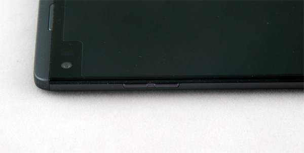 На узкой панели под стеклом еле заметно изображены логотип компании и надпись LG - честно говоря, я не очень понимаю, почему некоторых обозревателей название фирмы на лицевой части смартфона раздражает настолько, что они даже кющать не могут. Лично мне на это совершенно наплевать, а кроме того, я не понимаю, почему производитель не может свой бренд написать на лицевой части - с чего вдруг? С того, что у айфонов на лицевой части ничего не написано? И что с того?