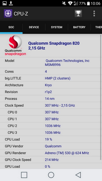 >> Процессор: Qualcomm MSM8996 Snapdragon 820, 8-ядерный