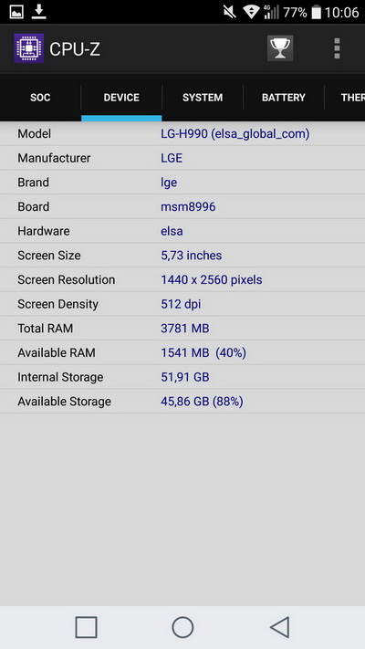 LG V20, модификация LG-H990N. Кстати, на российском сайте компании LG вы его вообще не обнаружите - он в Россию официально не поставлялся. Однако купить его можно