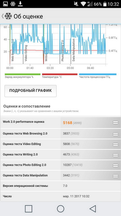 Синтетический тест PCMark. Кстати, у Samsung Galaxy S7 edge - 9 часов 43 минуты.
