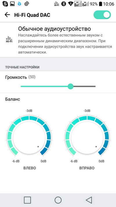 С аудио здесь все очень интересно. За воспроизведение звука отвечает совершенно новый чип ES9218 SABRE, который был анонсирован летом прошлого года и, насколько я понимаю, первым появился именно в LG V20. Чип работает с 32-битным звуком с частотой дискретизации до 384 кГц, соотношение сигнал/шум - 130 дБ. В нем присутствуют аж четыре ЦАП, работающих параллельно.