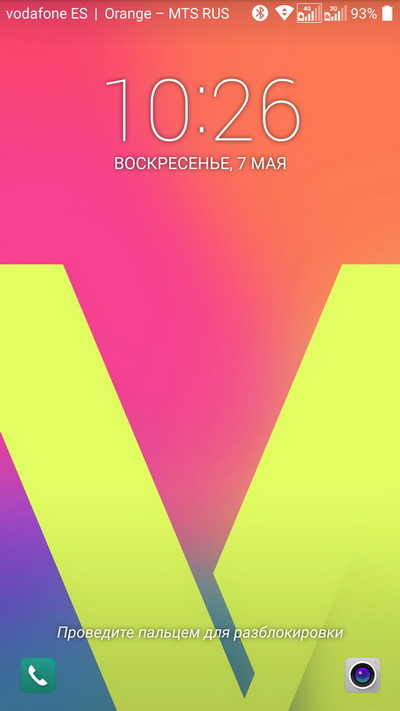 Окно блокировки с возможностью перехода в телефонное приложение или приложение "Камера".