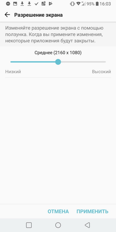 В настройках дисплея можно выставлять различные разрешения экрана - от максимального до 1440×720. Ну, 1440 - это перебор, а вот 2160×1080 (практически FullHD, только увеличенный для соотношения 18:9 - такое разрешение установлено в Huawei Mate 10 Pro) смотрится отлично, и я на него и перешел: разницы с 2880×1440 я просто не вижу. И очень здорово, что пользователь сам может выбрать желаемое разрешение.