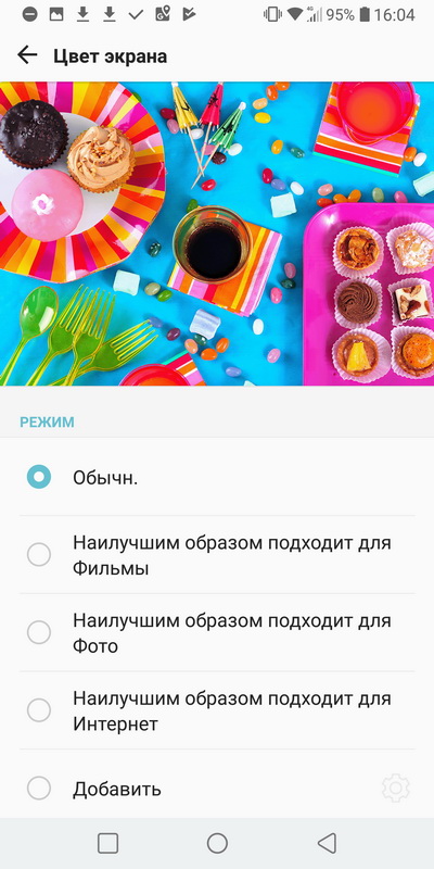 Предустановленные настройки дисплея не понравились: перенасыщенные цвета, не очень правильный баланс белого, агрессивная система корректировки, которая все время что-то делает с изображением и это выглядит странновато.