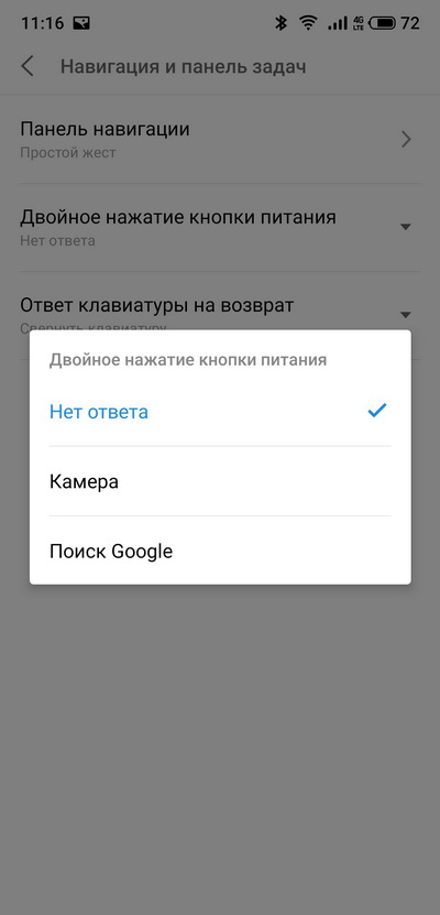 На двойное нажатие кнопки питания можно навесить вызов камеры или поиска.