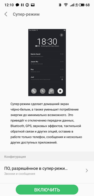 Режим минимального потребления. Туда можно добавить два приложения по вашему выбору.