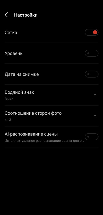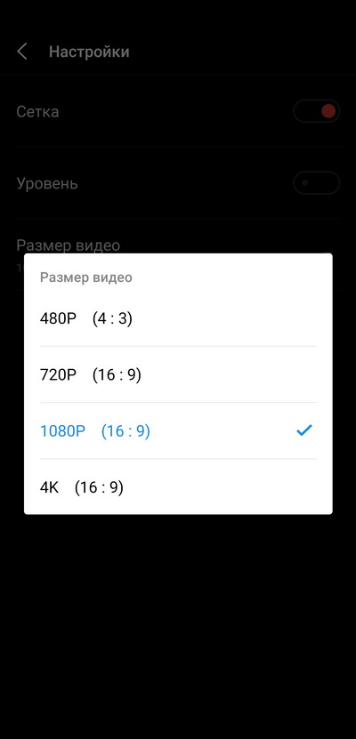 Настройки видео. Обратите внимание на то, что стабилизатора тут нет никакого.