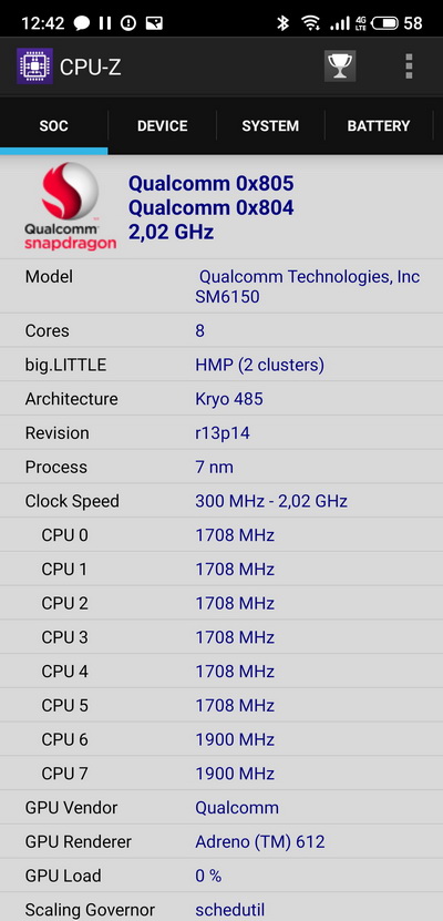 Процессор: Qualcomm Snapdragon 675, 8-ядерный
