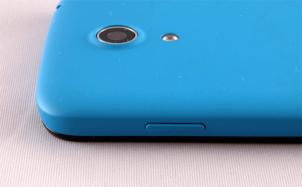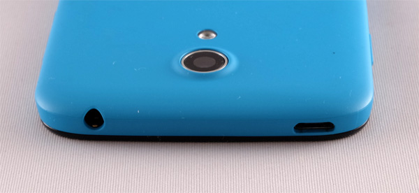 На задней крышке - камера со вспышкой и выход динамиков. Кстати, динамики расположены неудачно: если телефон кладется на заднюю крышку, звук заметно глушится поверхностью, на которой лежит смартфон.