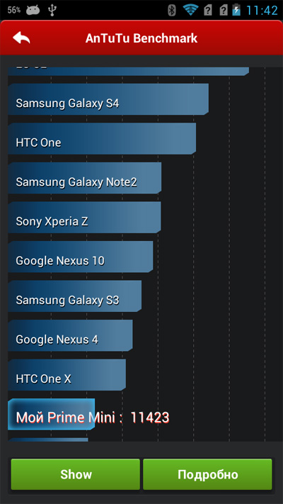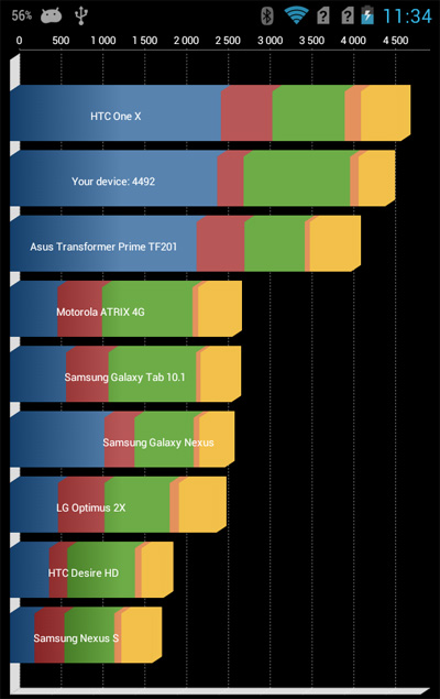 Quadrant Standart дал ей 4492. Для сравнения, у крутого Galaxy S4 - 12080. У скромного Lenovo IdeaPhone A820 - 4020.