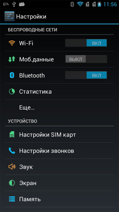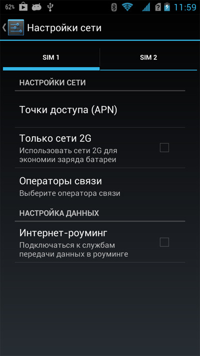 Настройка двух сим-карт.