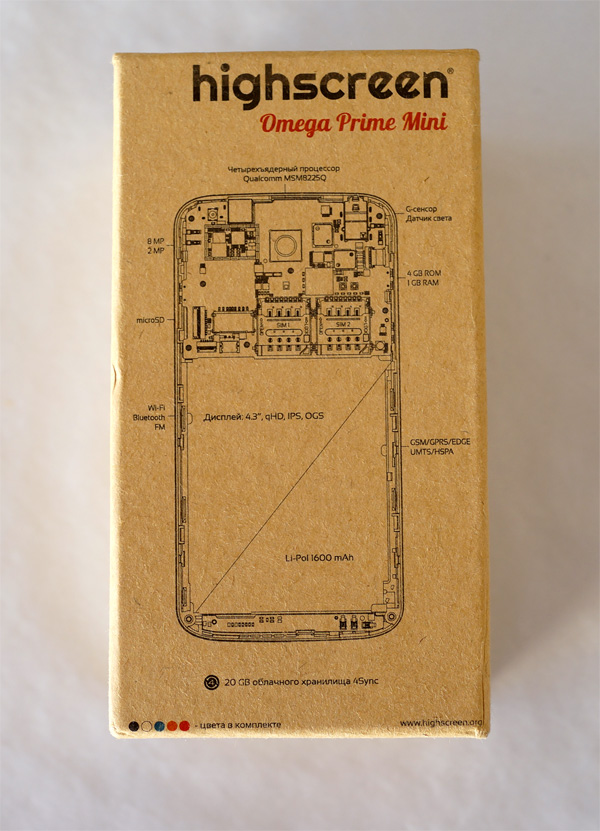 Оформление коробки - в традиционном для Highscreen стиле: "Консультант-радиолог доктор Алан Стейтэм рекомендует".