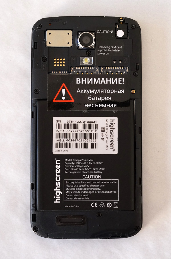 Надо сказать, что Highscreen Omega Prime Mini смотрится очень пристойно: его приятно взять в руки, да и показать не стыдно. У Highscreen была пара дешевых моделей с дизайном в стиле "Настоящая китайская деревня", а тут - совсем другое дело. Китайская, но не деревня, а вполне себе поселок городского типа. Как женский вариант просто очень неплох, учитывая возможность смены цвета, да и как мужской для тех, кто не любит большие дисплеи, тоже вполне подойдет. (По крайней мере, с точки зрения дизайна.)