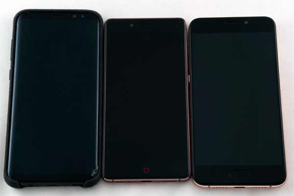 Ну и вот герой сегодняшнего обзора рядом с Samsung Galaxy S8+ и Umi Touch.