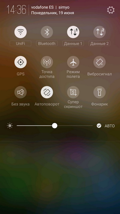 Одновременное поведение вверх и вниз с двух краев экрана (двумя пальцами) - настройка яркости.