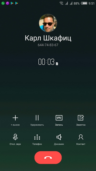 При входящем звонке показывается небольшая пиктограмма звонящего. В процессе разговора есть запись.