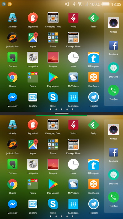 Прикосновением к краю экрана можно перейти на нужный рабочий стол.