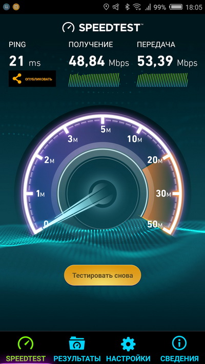 Скорость Интернета по Wi-Fi - на максимуме.
