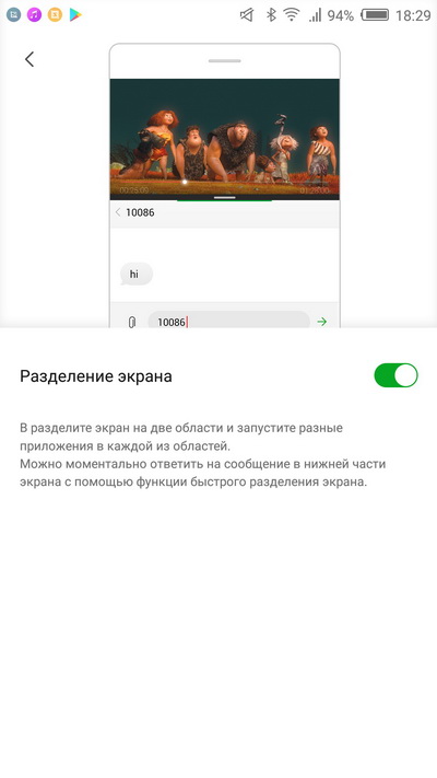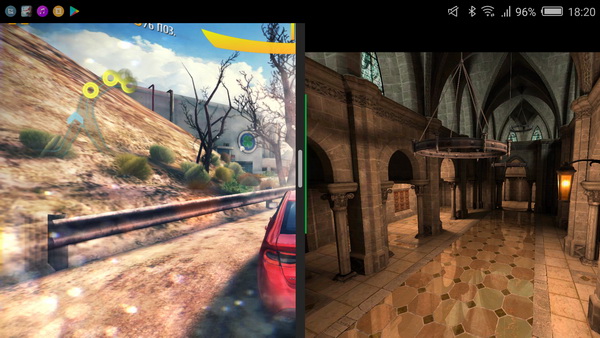 Свайпом от низа экрана вверх экран можно разделить на две части (две задачи), причем границу окон можно перемещать.