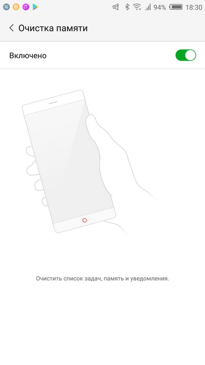 Несколько раз вверх/вниз пальцем по краю экрана - очистка памяти.