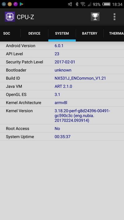 Android 6.0.1 и фирменная оболочка Nubia UI 4.0.