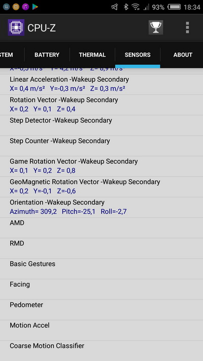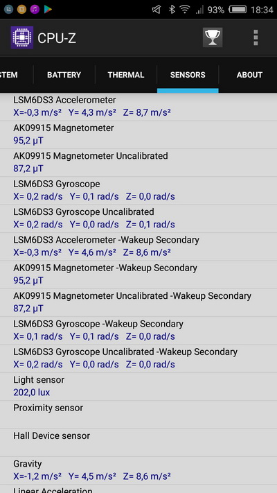 Дополнительно: aкселерометр, датчик освещения, датчик приближения, гироскоп, датчик магнитного поля