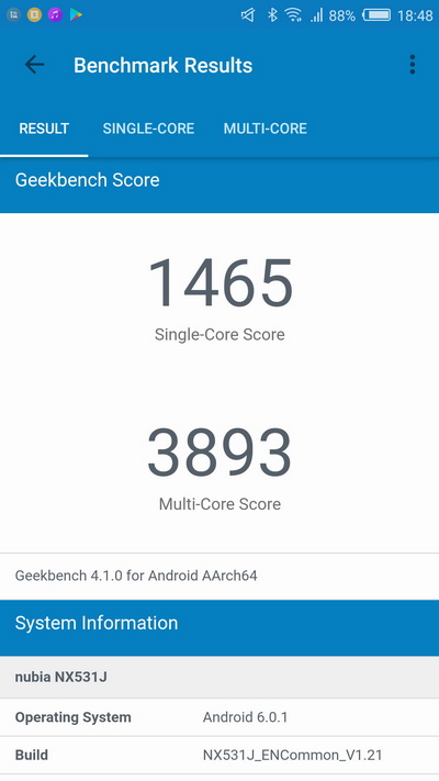 Операционная система: Android 6.0.1, оболочка Nubia UI 4.0