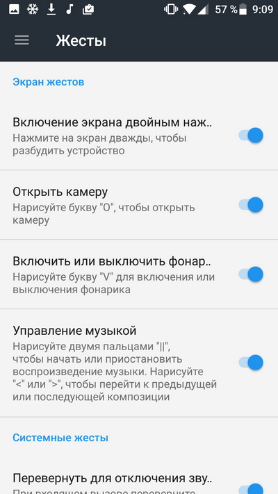 Настройка жестов.