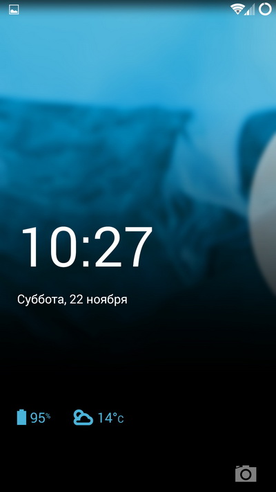 Экран блокировки, на который можно выводить различные дополнительные сведения. Также если потянуть экран влево - запустится камера.