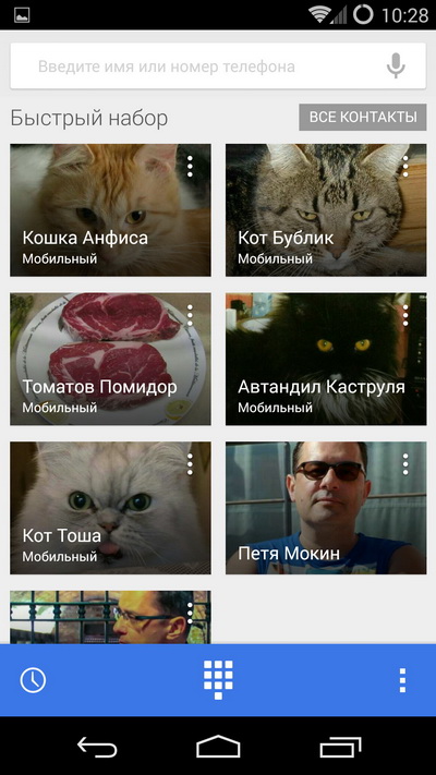 В разделе "Быстрый набор" - избранные контакты.