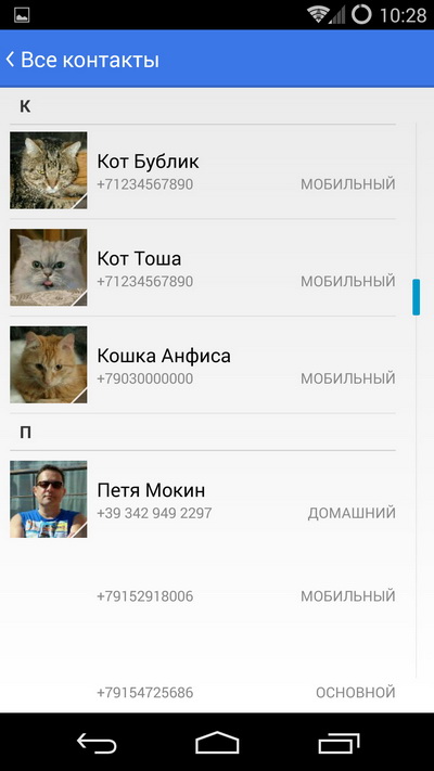 Все контакты.