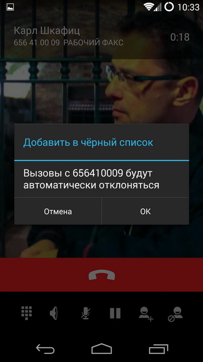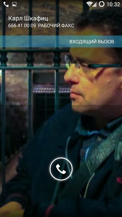При входящем вызове изображение абонента показывается на весь экран.
