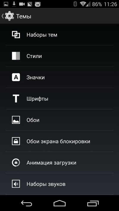 В настройках можно выбирать и редактировать как наборы тем, так и отдельные составляющие каждой темы.