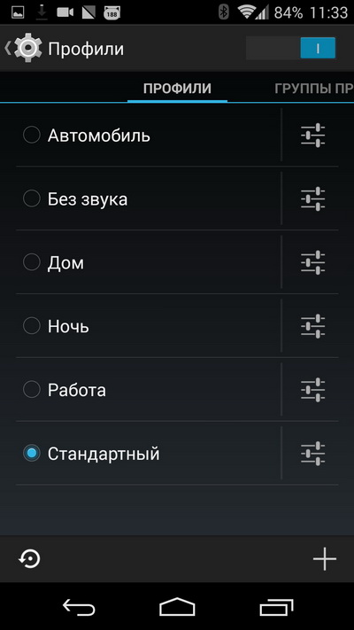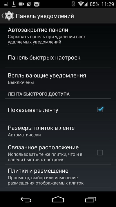 Быстрые переключатели (их набор настраивается).