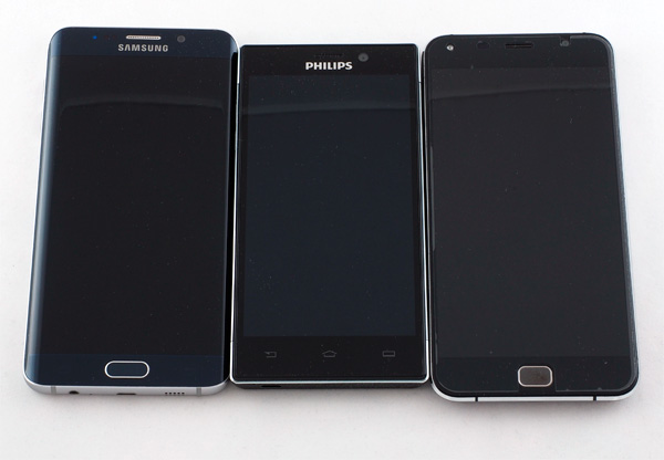 Вот этот смартфон рядом с Samsung Galaxy S6 edge+ и с UMI Touch, который, прямо скажем, выглядит поинтереснее с точки зрения дизайна (о Galaxy S6 я вообще молчу, но это совсем другая ценовая категория).