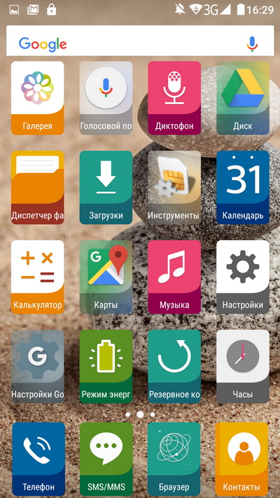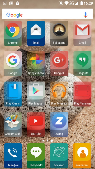 Раньше у телефонов Philips ставился чистый Android, а сейчас они сделали собственную оболочку, которая, если честно, на меня особого впечатления не произвела. Какие-то вычурные пиктограммы с подписями на плашках, настроек - ноль, пользоваться, на мой взгляд, неудобно. Впрочем, это Android, так что ставьте нужную вам оболочку и не забивайте себе голову. Тем более что системные приложения здесь стандартные, андроидные, которые также лучше поменять на что-нибудь более приличное. (Не люблю чистый Android, если честно.)