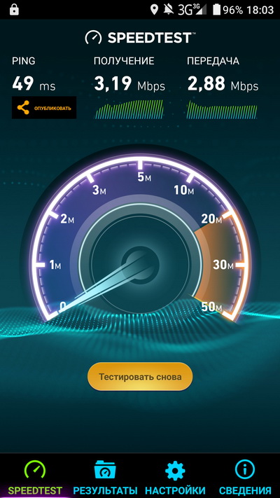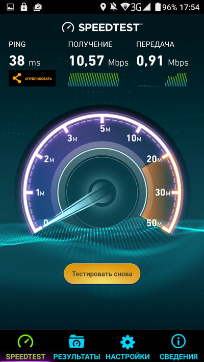 Тест Wi-Fi показал практически максимальные для условий тестирования параметры, тест 4G - нормальные параметры для условий тестирования.