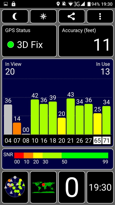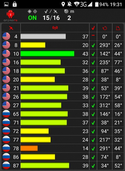 Я офигел. Первый раз вижу, чтобы задействованных родных спутников было примерно столько же, сколько "ихних". Обычно ведь как? 7-8 (ну да, ну да, указ от 07.08))) спутников GPS и 1-2 ГЛОНАСС. Я впечатлен. Нет, я сильно впечатлен! 😄