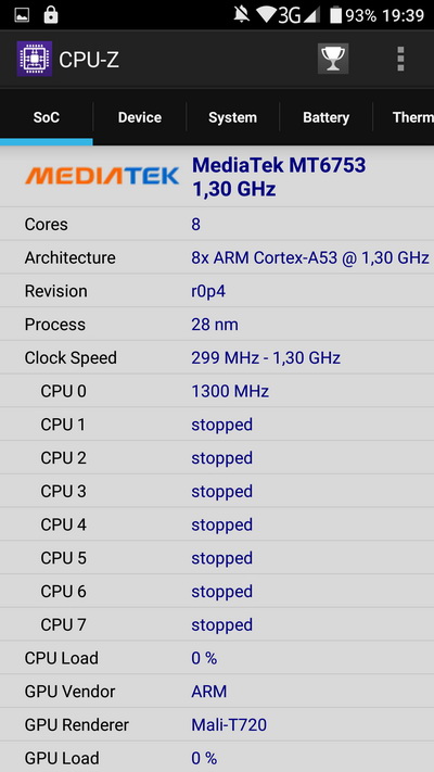 Процессор: МediaTek MT6735, 8-ядерный, 1,3 ГГц