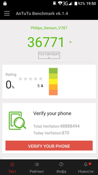 Впрочем, W6610 - модель старая, а мне было интересно, что у Philips происходит с новыми моделями. И вот от них приехал на тест новый смартфон - Philips Xenium V787. Пятидюймовый дисплей FullHD, две сим-карты плюс карта памяти, аккумулятор 5000 мА·ч, цена, правда, 19 990 рублей - ну вот давайте и посмотрим, стоит оно того или нет.