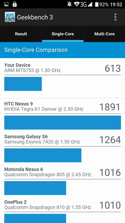 Тесты по GeekBench 3. У Vibe P1 - 684/2976. У K3 Note - 804/4008.