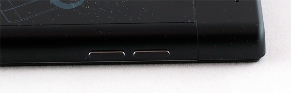 На левом торце - две клавиши регулировки громкости. Ход у них маленький, нажимаются не слишком внятно.