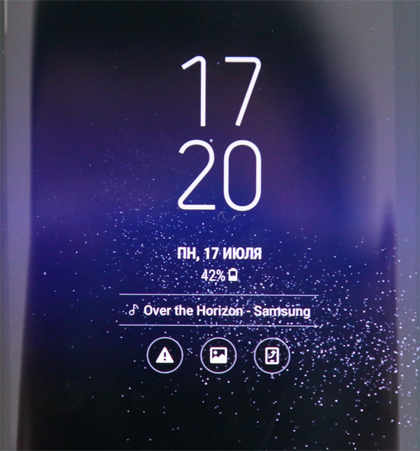 Здесь, как и у S6, есть режим Display Always On - когда на выключенный экран выводится всякая полезная информация. Только этот режим еще расширен: есть дополнительные возможности переходов и приложения, также вы можете управлять плеером, менять темы этого режима.