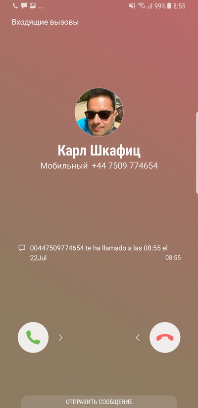 Входящий звонок. При этом показывается, когда этот абонент звонил вам раньше.