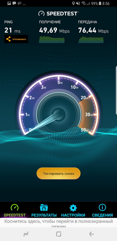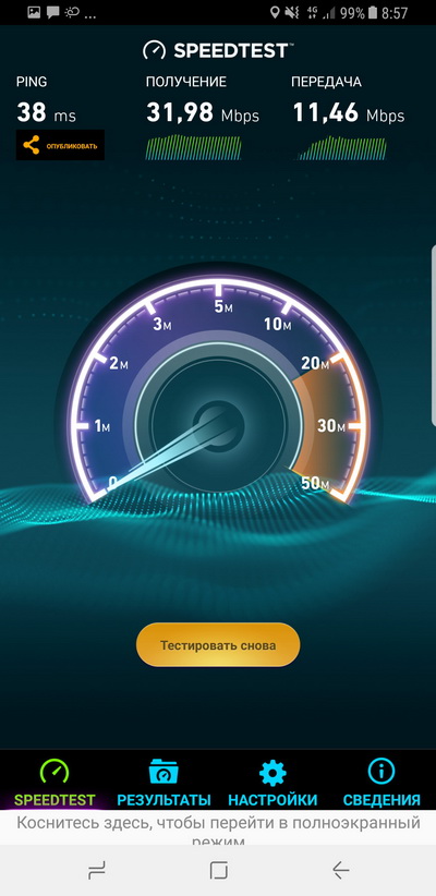 Тест мобильного Интернета - на максимуме скорости для данных условий.