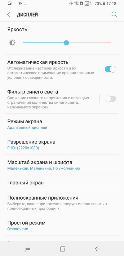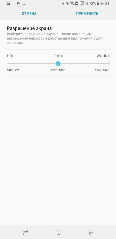 Для тех пользователей, которые считают, что им не нужно разрешение 2960×1440, в настройках можно выставить разрешение 2220×1080 и даже 1480×720.